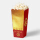 Modern design with golden textured paper (printed image) with vertical golden Chinese wishes + large 2025 in red + small Snake paper cut-out with yellow texts HAPPY NEW YEAR and Year of the Snake onto a red background. Design on packaging favor pop corn box. You can easily change year by clicking the customize button. Matching greeting card, holiday postcard and more soon... Perfect for a timeless and modern Chinese New Year of the Snake 2025.