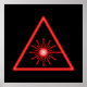 Black poster with a bright red 3D effect laser warning symbol.