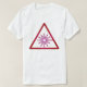 Red laser warning symbol on T-shirts in assorted styles and colors.