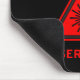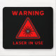 Black mousepad with red laser symbol and warning text.
