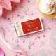 Spark some fun with these custom “Last Slice of the Single Life” matchboxes! Featuring a rich cherry red background with crisp white doodles and text, these little beauties bring big personality to your celebration. Decorated with a hand-drawn pizza slice and cocktail glass with a bow, plus the bride’s name and party details, they’re perfect as bachelorette favors or stylish accents on a table, bar cart, or gift bag.