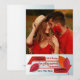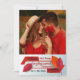 A trendy Save the Date Photo Announcement with a red ribbon banner and autumn leaves. (<a href="https://www.freepik.com/free-photo/man-holds-tender-beautiful-woman-standing-with-her-on-the-green-field-with-red-poppies_2914018.htm">Designed by Freepic.diller</a>). (<a href='https://www.freepik.com/free-vector/autumn-sale-only-one-day-lettering-with-red-leaves-autumn-offer-or-sale-advertising_2748261.htm'>Designed by Katemangostar</a>). <br/><br/>The card is easy to customize with your wording, font and font color.<br/><br/>Not exactly what you're looking for? All our products can be custom designed to meet your needs at no extra charge.<br/><br/>Simply contact us at askcottonlamb@gmail.com.<br/><br/>Coordinating products available: Just ask us!