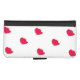 A red tulip leaf pattern covers this iPhone case, over the white background.