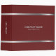 Elegant image of red leather with silver tones stripes as an accent. Very flexible design where you can position the frame as you need for your custom information.