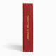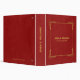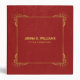Red faux leather texture with a gold vintage frame and customizable typography.