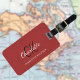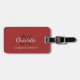 Red leather texture monogram luggage tag