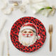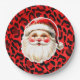 Red Leopard Print Retro Santa Claus Christmas Paper Plates