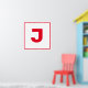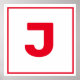 Red letter J alphabet on white background with red border. Help your little one learn the alphabet with this letter J design.