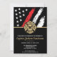 This design features a firemen's flag with black and white stripes, and a thin red line stripe as well. A fireman's badge sits above all of the party details for the retiring firefighter, lieutenant, or chief's retirement party.