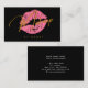 Red Lips & Gold Handwritten Script Makeup Artist Business Card