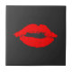 Red Lips Kisses Kiss Black Ceramic Tile
