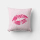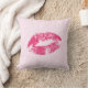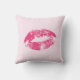 Red Lips Over Light Pink Floral Damask Pattern Throw Pillow