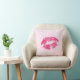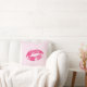 Cute red lips over light pink floral damask background. Customizable throw pillow template