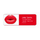 Special punk pop art red lips personalised address labels with an art design of large red lips with lipstick against a bright red customisable colour background. The text is fully customisable to include your own personal details.