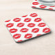 Red Lips, Red Lipstick, Kiss, Pattern Of Lips Beverage Coaster