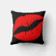 Red Lipstick Kiss on Black Throw Pillow