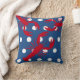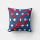 A red lobster with white polka dots and navy blue background on a throw / toss pillow for a nautical themed home, apt, condo, summer or beach / shore house