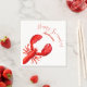 Nautical, summer and sea food theme. A red lobster on a white background. Red hand lettered style script and the text: Happy Summer! Template for your family name.