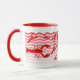 Customize this fun mug with any name! A pod of red lobsters float in a sea of red waves that go from dark lobster-red to a pink-red. There are large red lobsters, and small red lobsters and in-between sized red lobsters floating in a sea of red waves, a simple design that's great fun for kids (or grown-ups!). ()