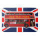 This cheerful custom bath mat features the famous red double-decker bus, a very popular symbol of London and Britain, set on top of the Union Jack.