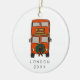 Whimsical Christmas tree ornament featuring a London double decker bus illustration with a Christmas wreath as a special festive touch. Turn it over and add your favorite photo from your London trip as a special momento! Original art and design by Annie Montgomery Design.