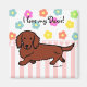 Unique and funny Dog Cartoon created by Naomi Ochiai from Japan. Cute and Funny Dachshund cartoon gift items for Dachshund fans!! Long haired red Dachshund cartoon design. He/She has cute eyes! Sweet pastel tiny flowers and stripes pattern background. You can customize text and more!