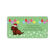Red Long Haired Dachshund cartoon Christmas Mint Green Address Labels for Doxie fans!! A Cute Dachshund is sitting like a model with his/her Santa Hat!! Colorful Ornaments and tiny snowflakes in the background. You can customize text and more! Unique and funny Dog Art created by Naomi Ochiai from Japan.