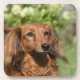 Red Long-haired Miniature Dachshund Beverage Coaster