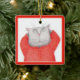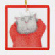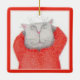 RED LONG JOHNS CAT Ceramic Square Ornament