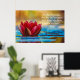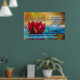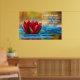 Red Lotus Flower on Blue Water Spiritual Quote Poster