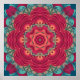 Beautiful, spiritual mandala, drawn while being inspired by lotus flowers, in red and orange with teal teal colored leaves. The way the colors are used give this inspirational artwork a 3 dimensional look.