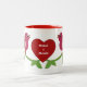 Mug with cute pair of red birds with heart accents and text to customize with chosen names or other message. Sweet design for newlyweds, Valentine's or Sweetest Day.