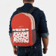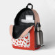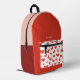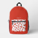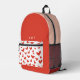 Playfully painted red love hearts pattern printed backpack with optional personalization.