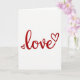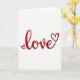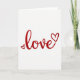 This card features the word “love” in deep red across a bright white background, making the message easy to notice right away ❤️. The letters are smooth and flowing, with gentle curves that feel romantic and calm. Near the top of the first letter “l,” there’s a small open heart shape, like a sweet little accent. The last letter “e” ends by turning into a larger heart outline, which makes the whole word feel extra caring without needing anything else. A light shadow under the letters gives the design a slight lifted look, as if the word is resting on the page. The red color has a textured finish that looks a bit like soft fabric or fine sparkle, adding warmth and depth. It feels meaningful to give because it says what you feel in a simple, honest way—perfect for a partner or a close friend 🥰. Hope it helps you share your Valentine’s Day sentiments.