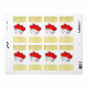 A fabulous sticker with red love hearts and scroll tattoo style picture in red white and gold and so easy to personalize with your initials and wedding date for table decor or favor DIY projects.