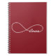 Simple, cute and elegant Red Love Infinity Notebook. Great for wedding planning, school or work. Add text name(s) and/or wedding date to customize.