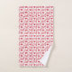 A bath towel set built with a love pattern in red. Customize the white background, pattern size among other options.