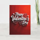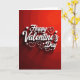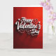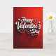 This greeting card has a rich red background that gently shifts in tone, moving from brighter red in one area to deeper red in others. That change in color adds depth and warmth to the design. Centered on the card, the words “Happy Valentine’s Day” appear in smooth white lettering that flows together in a connected style. Small heart shapes are worked into the lettering, including tiny accents where dots would usually be, adding a sweet detail. Long shadows fall down and to the right of the text in a darker red shade, giving the message a lifted look against the background. The contrast between the white letters and red tones makes the greeting easy to read and full of feeling. The overall look feels romantic, thoughtful, and heartfelt, making it a lovely choice for someone special on Valentine’s Day 💕❤️.