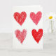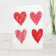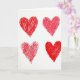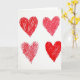This card shows four red hearts drawn with marker on a plain white background, laid out in a neat two-by-two arrangement. Each heart has slightly uneven edges and is filled with quick red strokes that go in different directions. Two of the hearts look more fully colored in, while the others leave small white gaps that make the texture easy to see. There’s no character scene or extra objects, just these simple hearts that feel warm and direct. The card doesn’t include any printed words or message text on the front, so the hearts do all the talking. The overall look is bright, sweet, and focused on love and closeness 💕