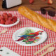 Red macaw tropical floral paper plates