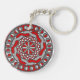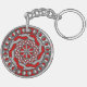 This concentric circle design contains layers of geometric patterns that resemble gears that you might find in modern or even alien machinery, in shades of red and gray.