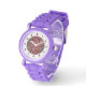 This concentric circle design contains layers of geometric patterns that resemble gears that you might find in modern or even alien machinery, in shades of red and gray. This watch is available in a variety of sizes, colors, and styles, including sizes for both kids and adults.