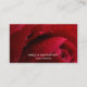Beautiful macro photograph of a red rose blossom. Big water droplets sit on its delicate petals giving it a fresh summery look. Professional business card design suitable for florists, wedding and flower themed businesses.