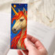 This fantasy bookmark has a cool unicorn pictured on both sides of it.