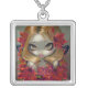 Red Maple Fairy - part of my "Flowers" series, this lovely big eyed fairy portrait is accented with beautiful red maple leaves! There are also some of the red flowers that pop up occasionally on maple trees, and those little seed pod doo-dads that flutter down (we used to call them "helicopters"). A nice autumn-y feel to this one. My own original acrylic painting. ***Remember, you can choose either ROUND or SQUARE necklace fittings!***
