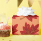 Red maple leaves design over a rustic fall orange color wrapping or decoupage paper.