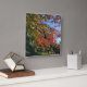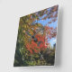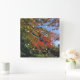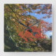 A beautiful view of colored maples and a traditional tea house seen between them in the distance in autumn at Koishikawa Korakuen in Tokyo, one of the finest Japanese landscape gardens. Clock face displayed with Japanese Kanji numbers.