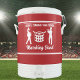 This cool customized red high school marching band igloo beverage cooler features white typography for band camp, football games, and marching competitions. Personalize above the sousaphone player, drum, and flutist holding a flute.