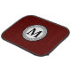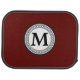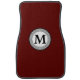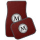 These attractive mats feature your monogram in black on an ornate black and white circle banner. The banner and monogram are placed on a maroon red background, which looks great in almost any vehicle.