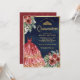 Red Marsala Floral Dress Navy Gold Quinceanera Invitation